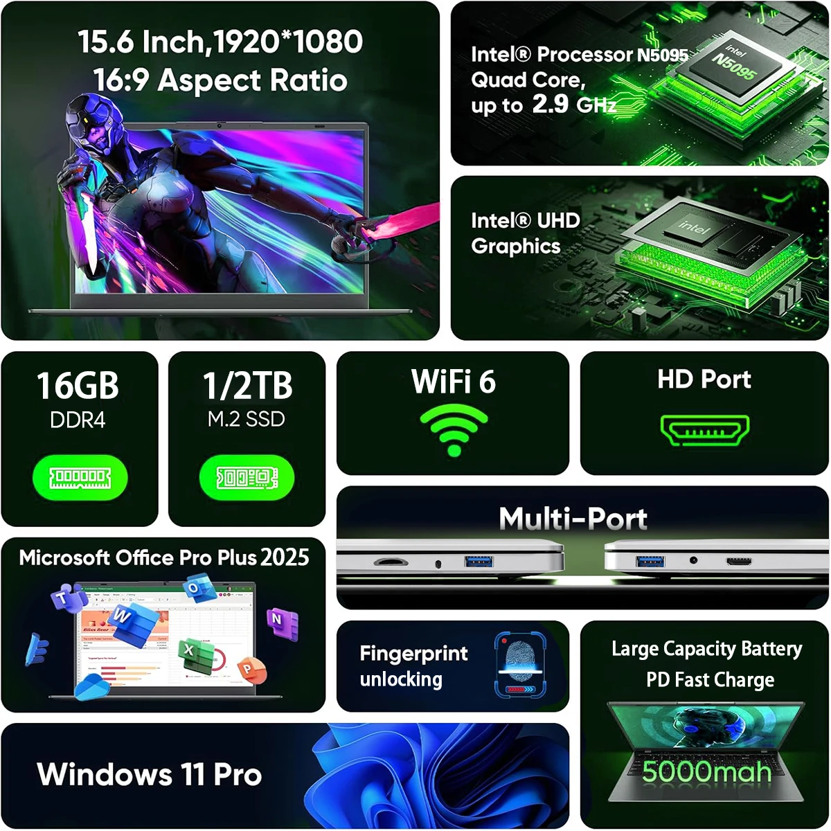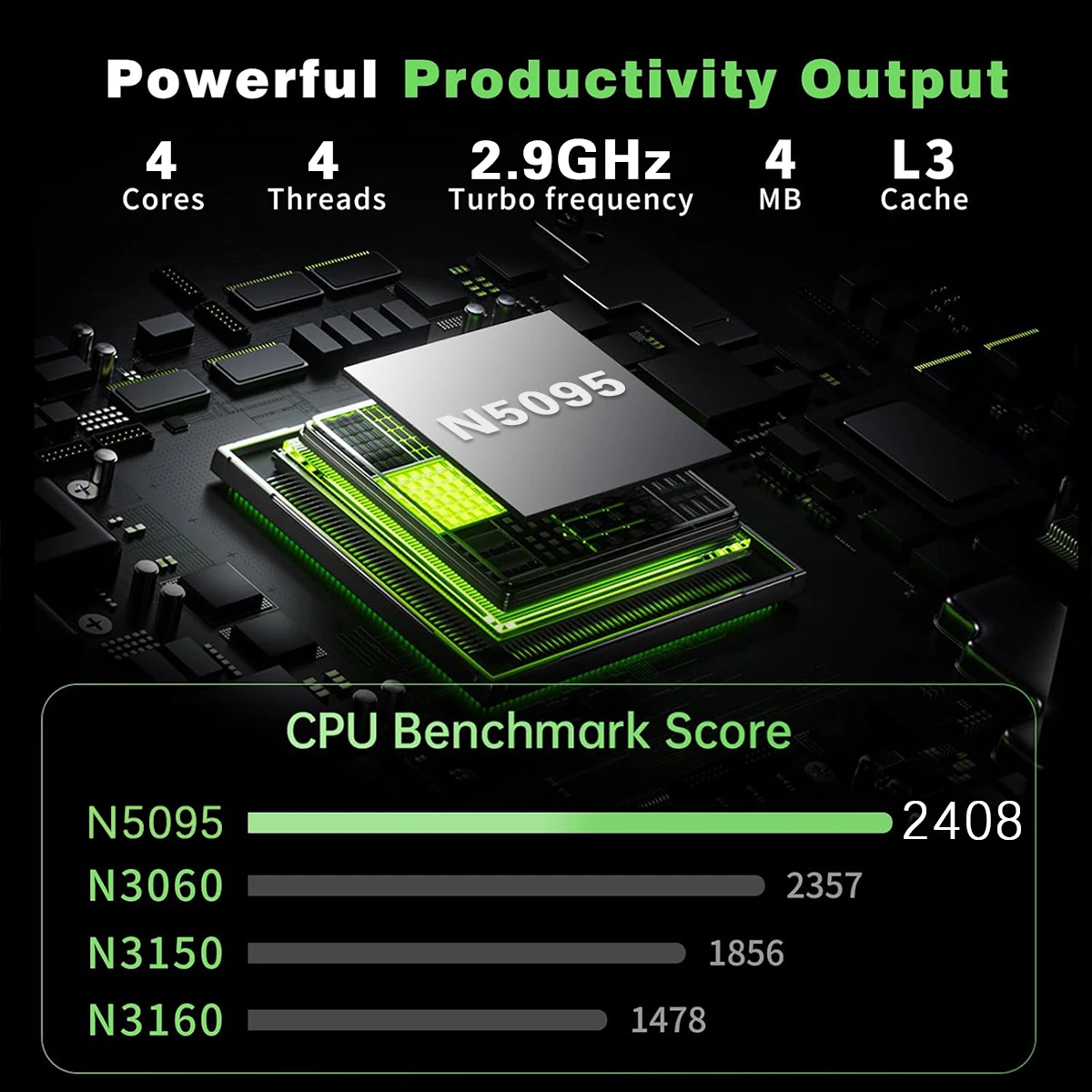 N5095 LAPTOP: This laptop is powered by a Celeron N5095 processor, and its fast and reliable performance can easily handle tasks such as documents, web browsing, and more powerful multitasking.