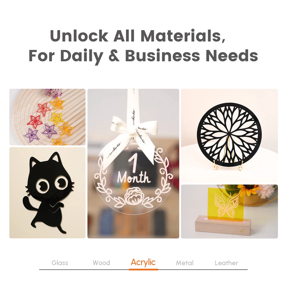 Ultrafine Laser Point & Powerful Laser Module – Comes with the latest FAC laser technology for compressed laser point, 0.08 x 0.08mm point size, super concentrated energy can make carving or cutting more solid. The output power of the laser module reaches 10W.