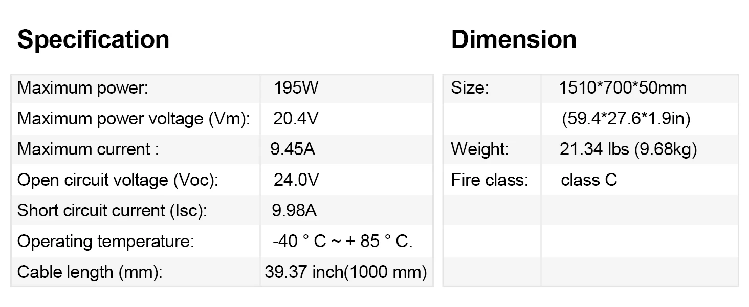 • Features: All Daylight Conditions, Monocrystalline