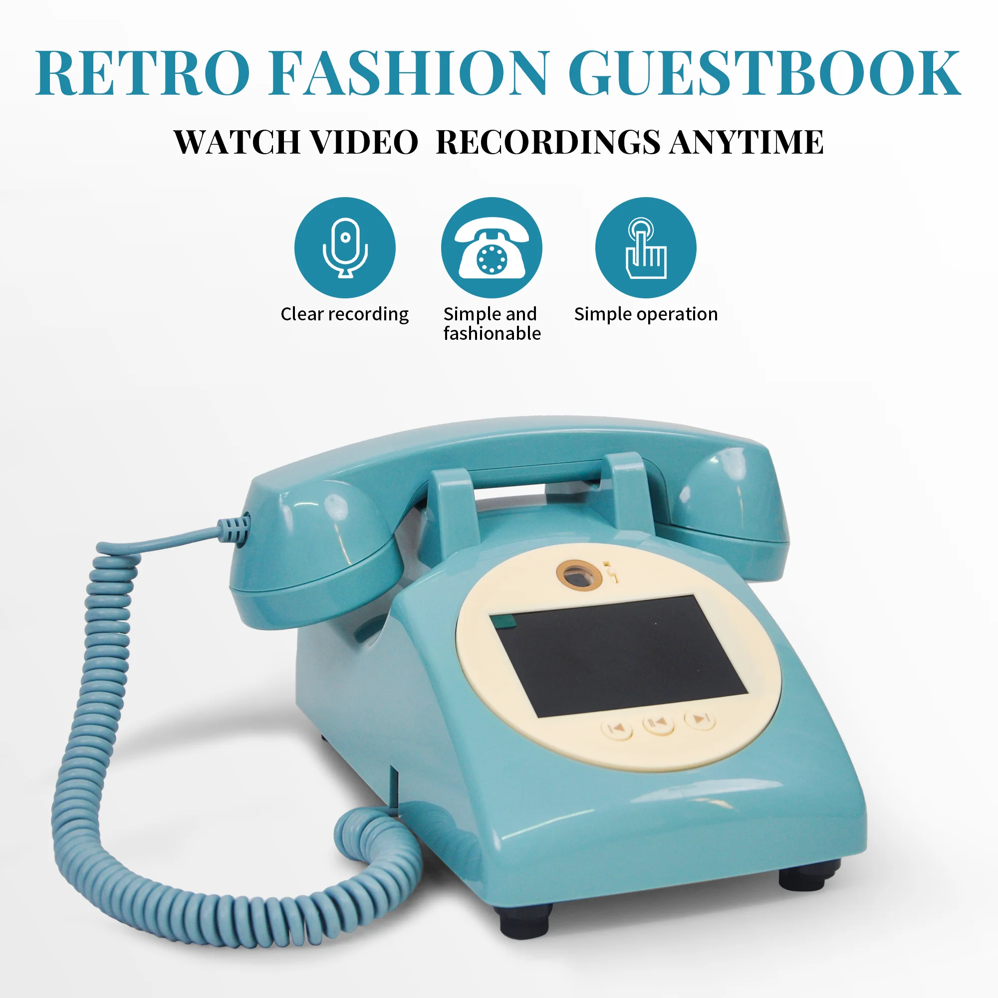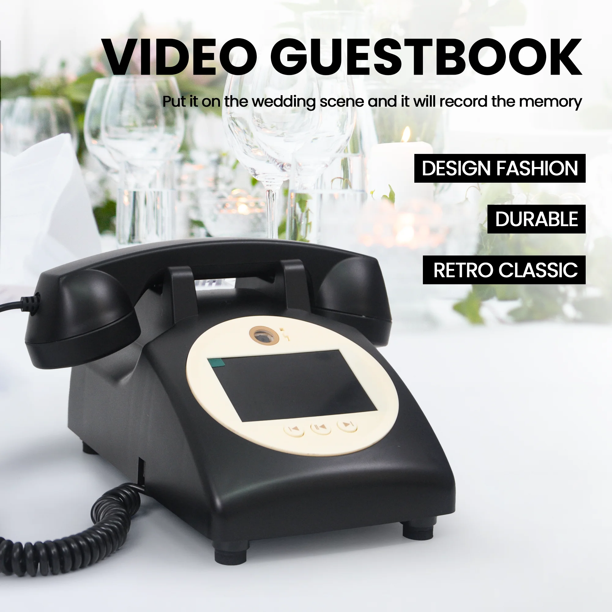 Retro style wedding party video guest book phone retro phone message recording 2K resolution video audio message book phone