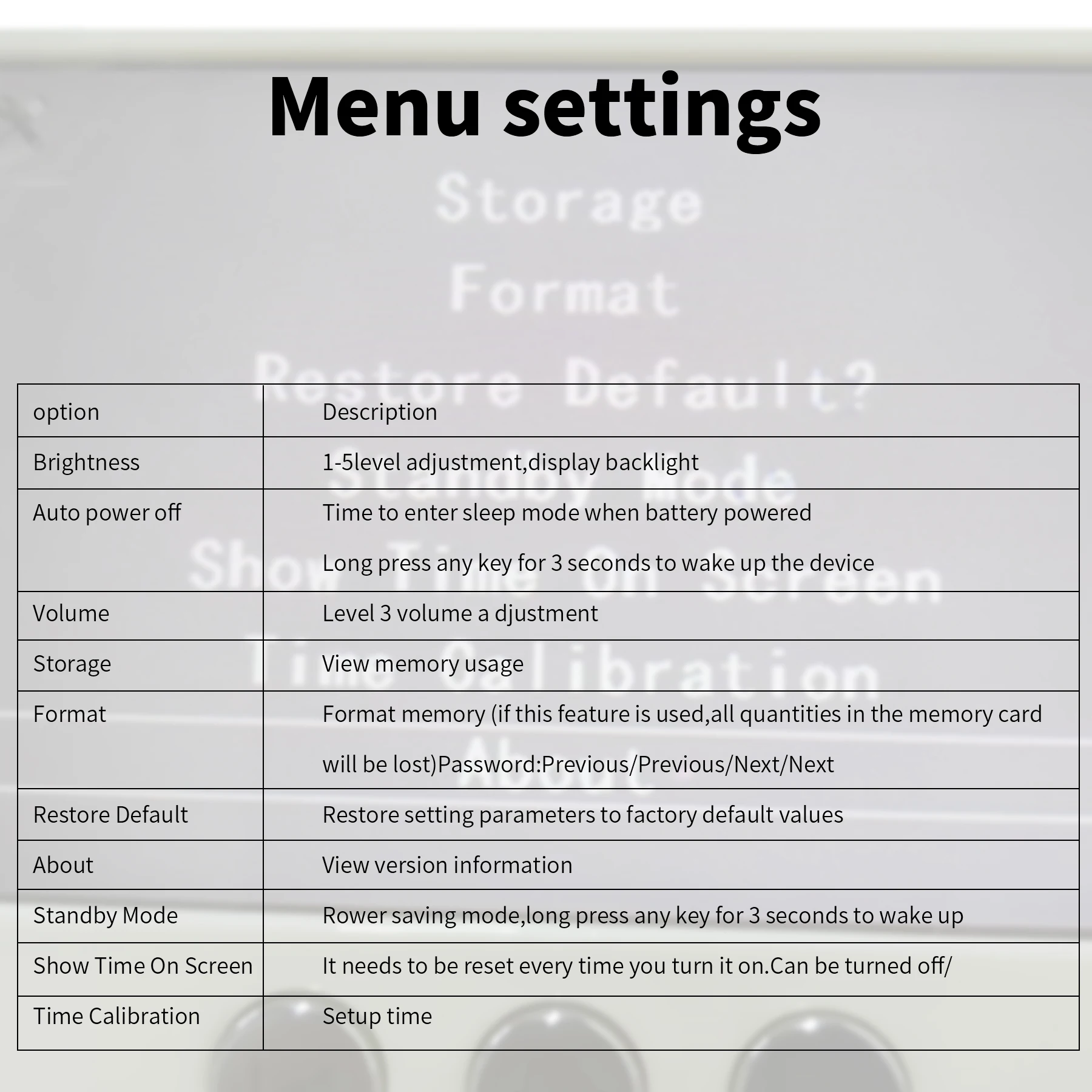 1: In standby mode, press and hold "Previous" for 3 seconds, and the screen will display "OMG Ready" to enter