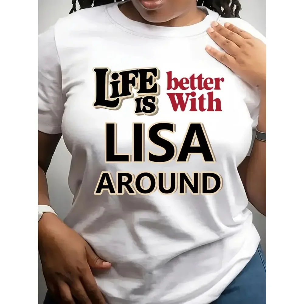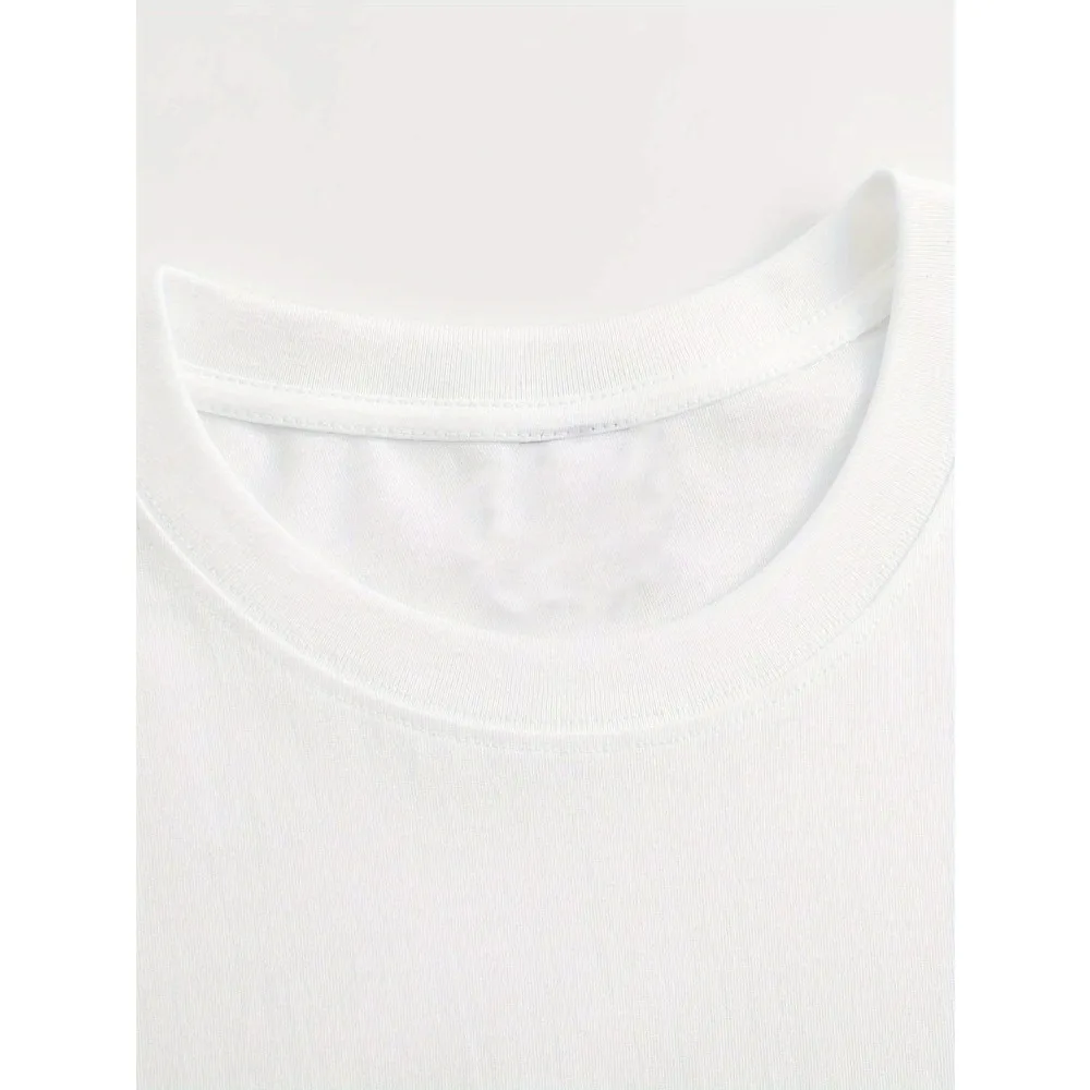 Women’s Anime Letter Printed Cotton T-shirt Loose Short Sleeve Round Neck Pattern Breathable Casual Personalized Printed Top